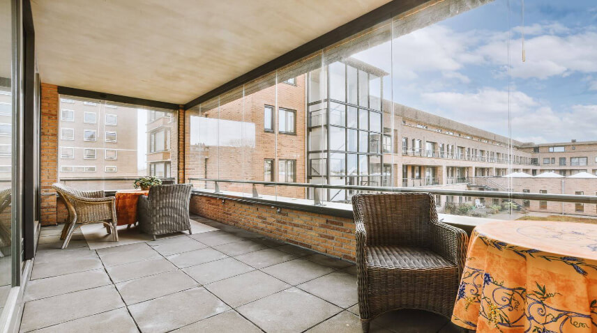 Стекло фиксируется специальными профилями на полу и на потолке. Не нужно беспокоиться о надёжности конструкции, потому что профили сделаны из алюминия, а стекло — закалённое. Лучше наслаждаться балконом или лоджией, которую солнце буквально заливает.